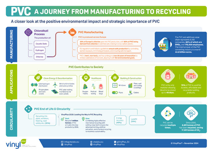 Mechanisches Recycling ist in der PVC-Wertschöpfungskette schon seit Jahrzehnten etabliert. Der größte Teil von Pre-Consumer-Abfällen (Produktions-Abfälle) gelangt direkt in die PVC-Verarbeitung zurück. Für die Wiederverwertung der Post-Consumer-Abfälle (Nachgebrauchs-Abfälle) hat die PVC-Industrie seit Anfang der 1990er Jahre auch Branchenlösungen entwickelt, die fester Bestandteil der Kreislaufwirtschaft sind.